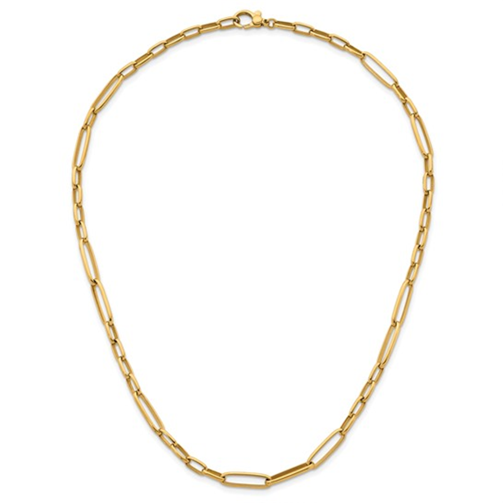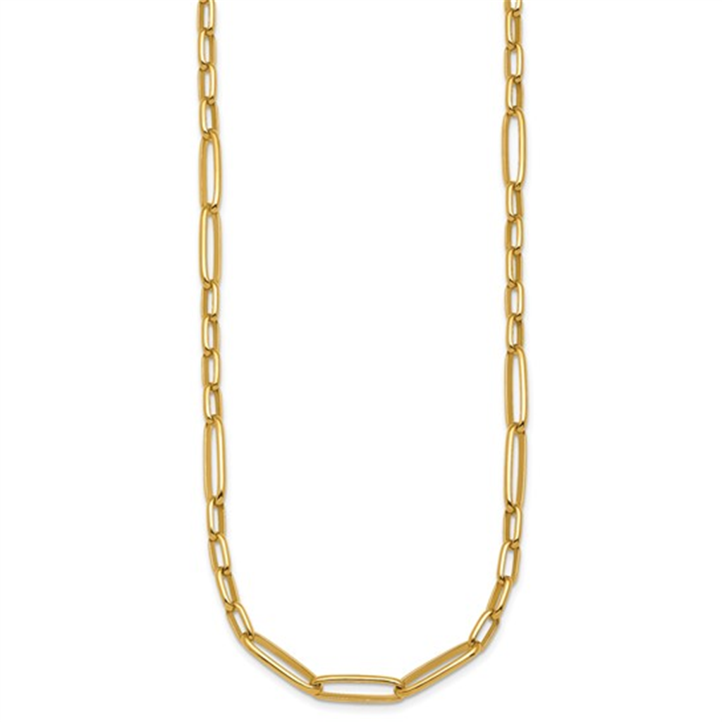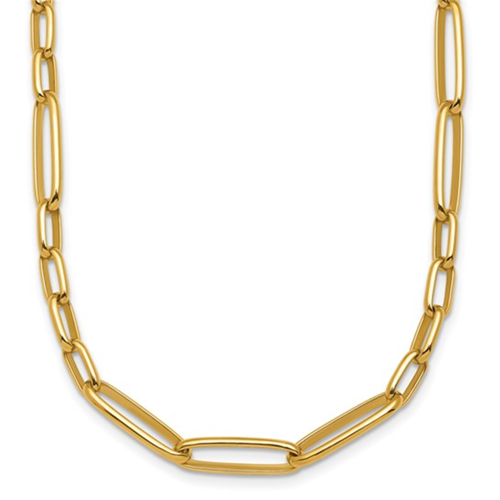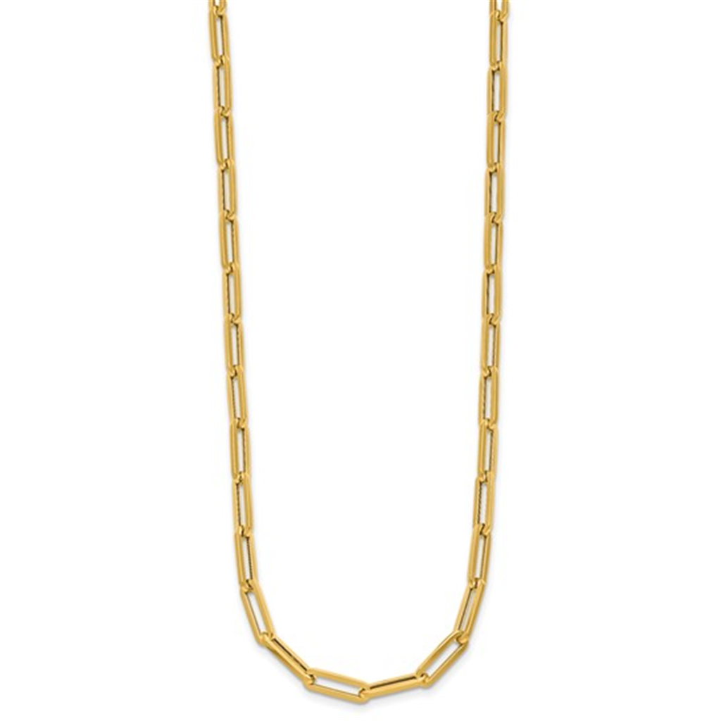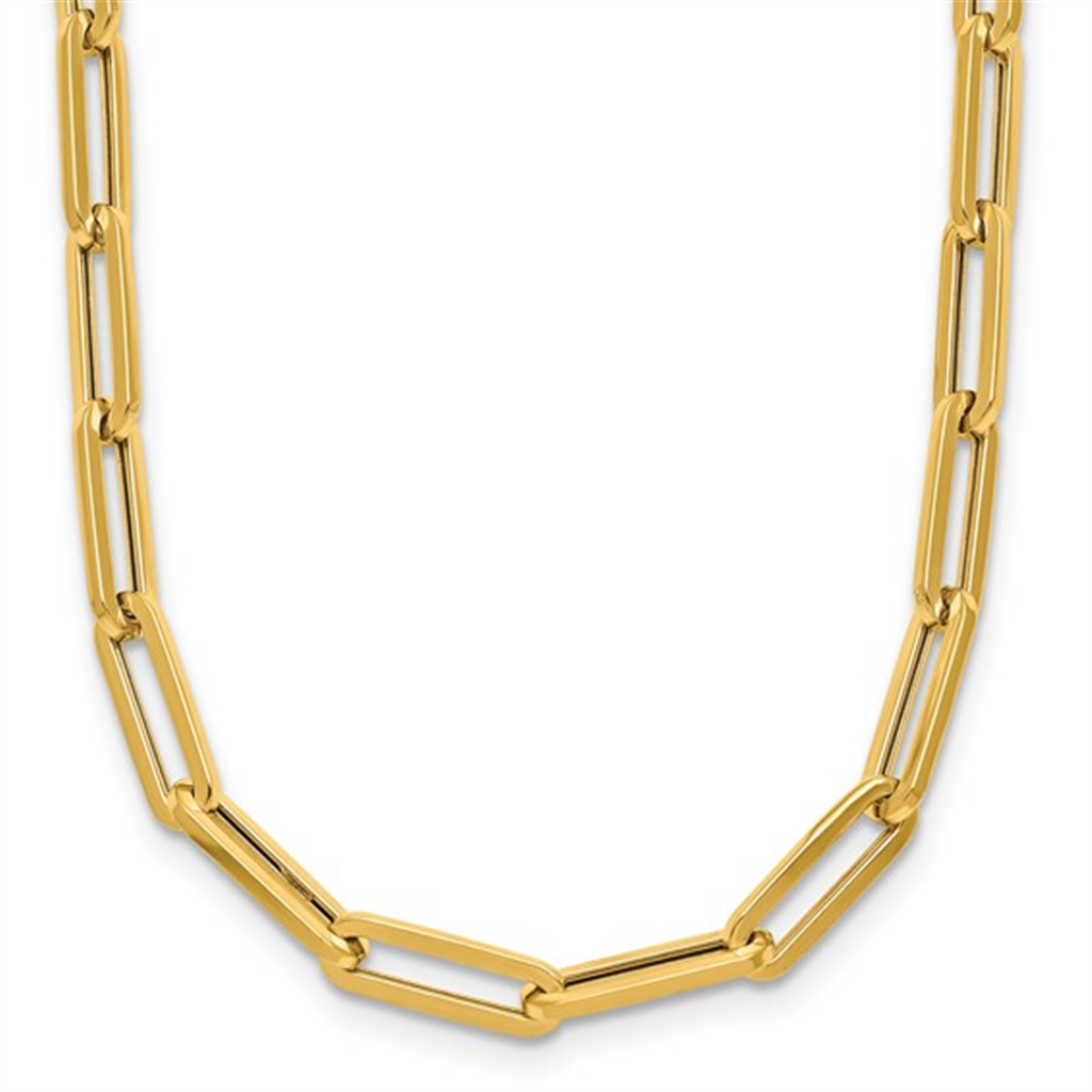 18K Yellow Gold Flat Paperclip Chain 4mm Necklace.