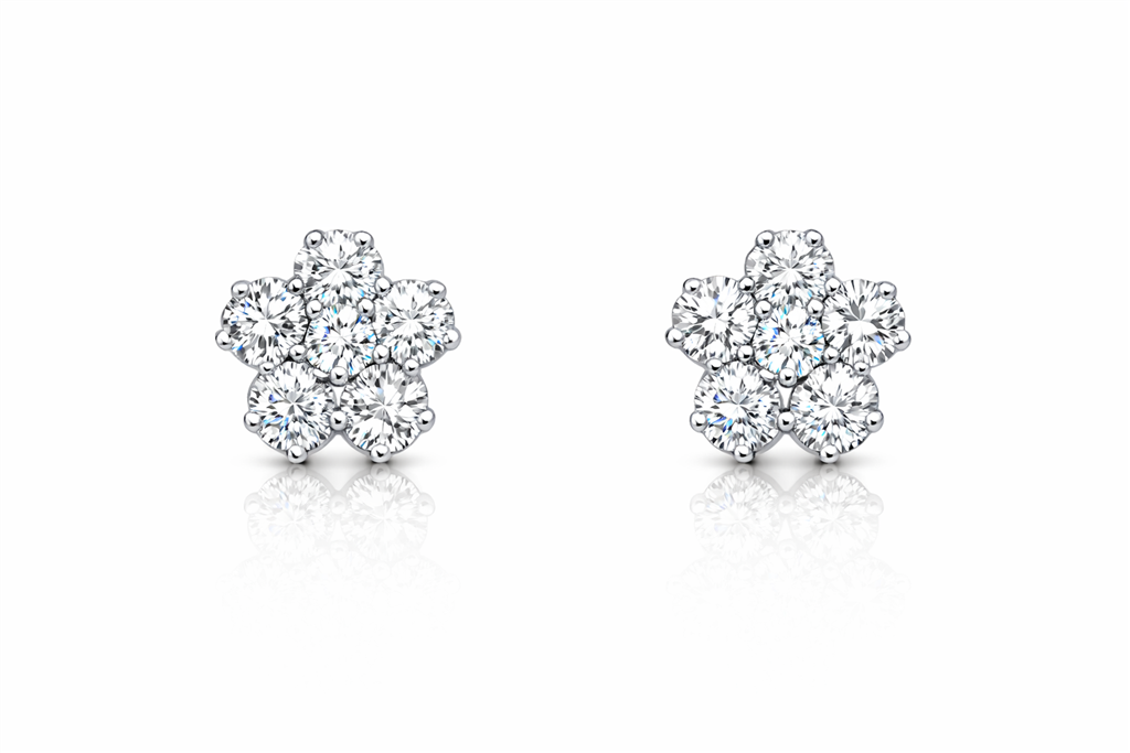 White Gold Diamond Flower Stud Earrings