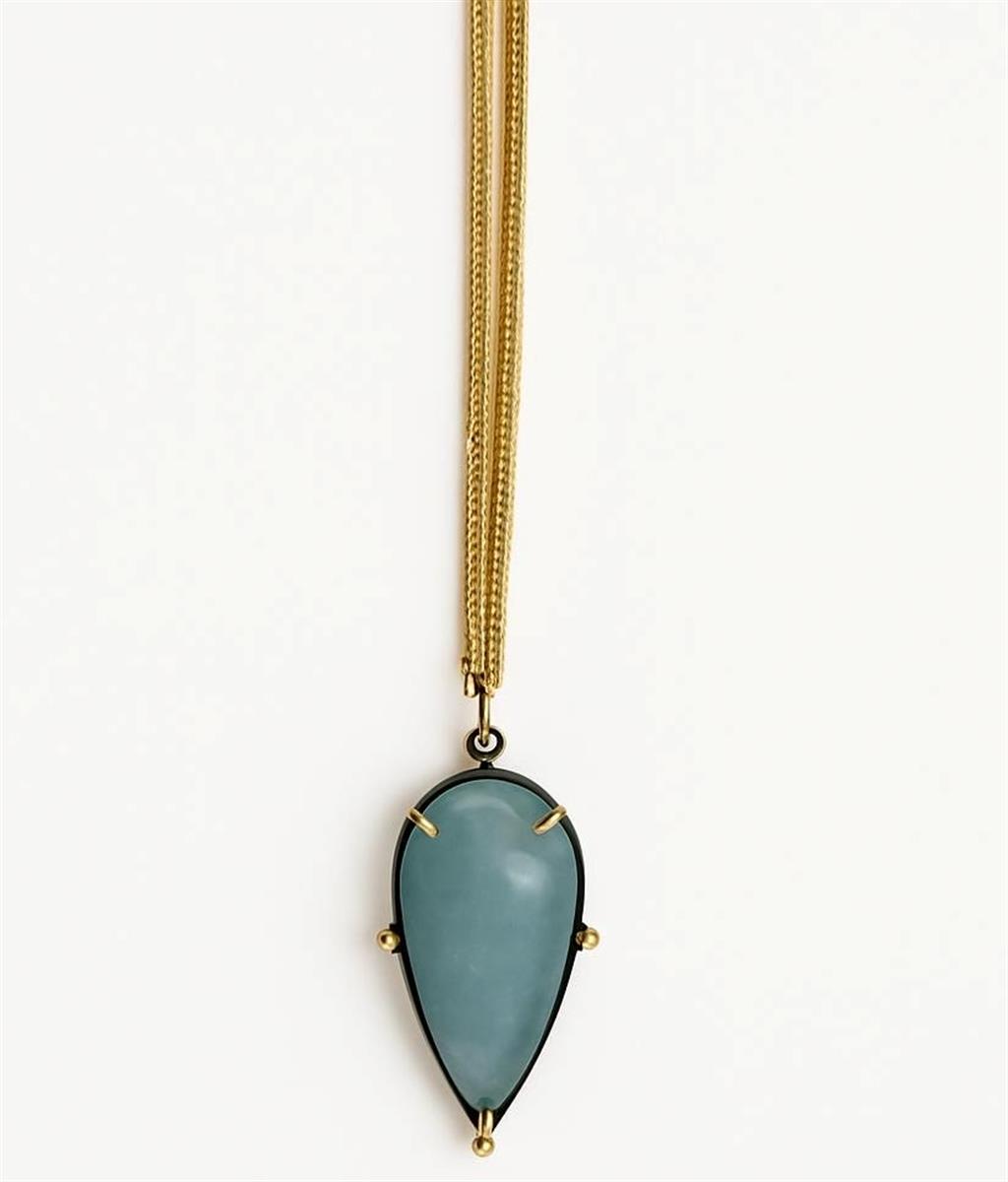 14K Vermeil & Oxidized Sterling Silver Chain with 1-Aquamarine Pendant with White Topaz Stones