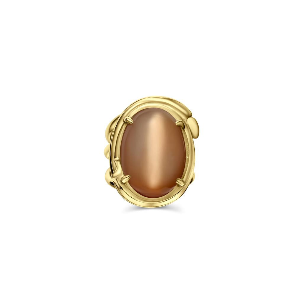 18K Yellow Gold Oval Peach Moonstone Snake Ring (12.44ctw)
