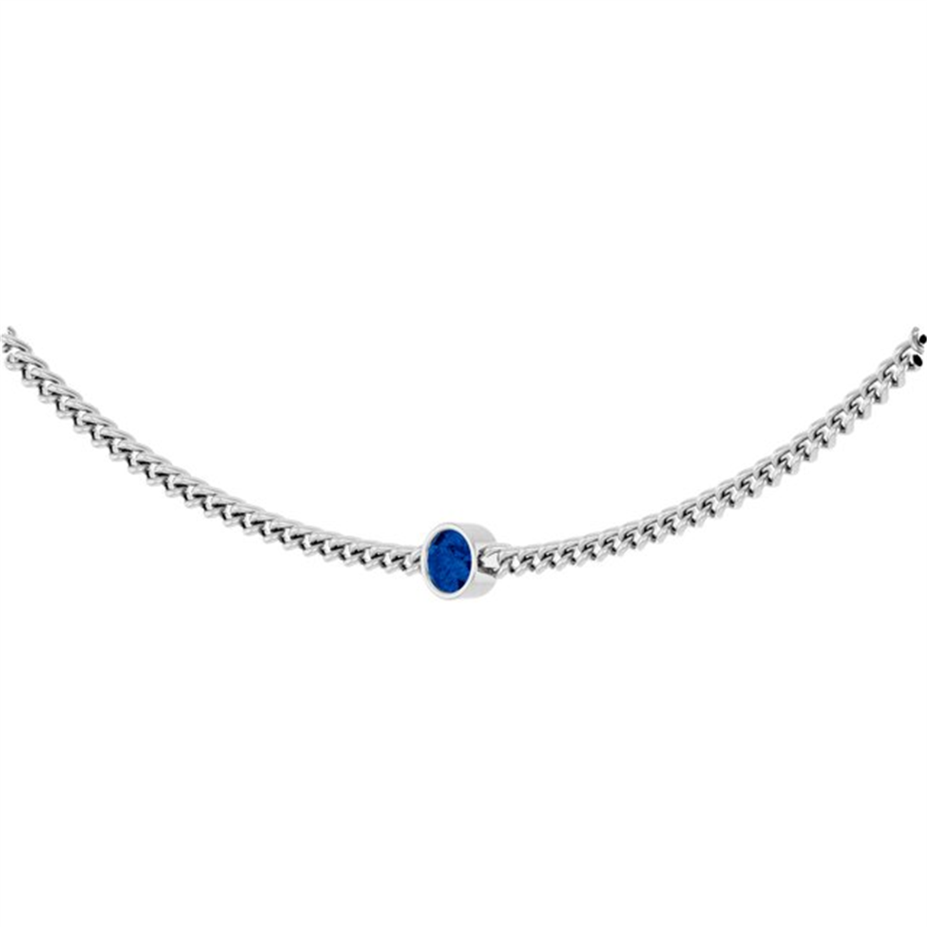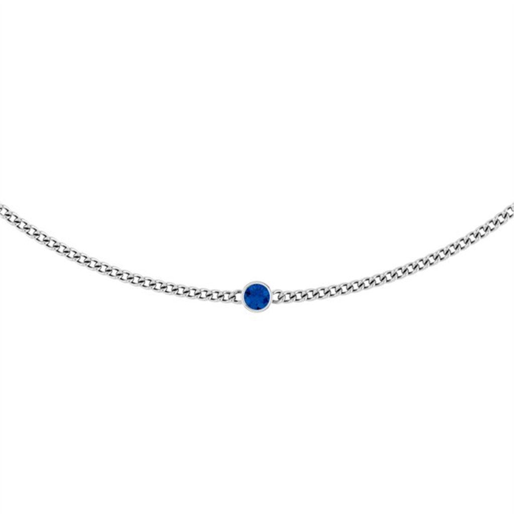 14K White Gold Lab Grown Blue Sapphire Solitaire Curb Link Chain Necklace