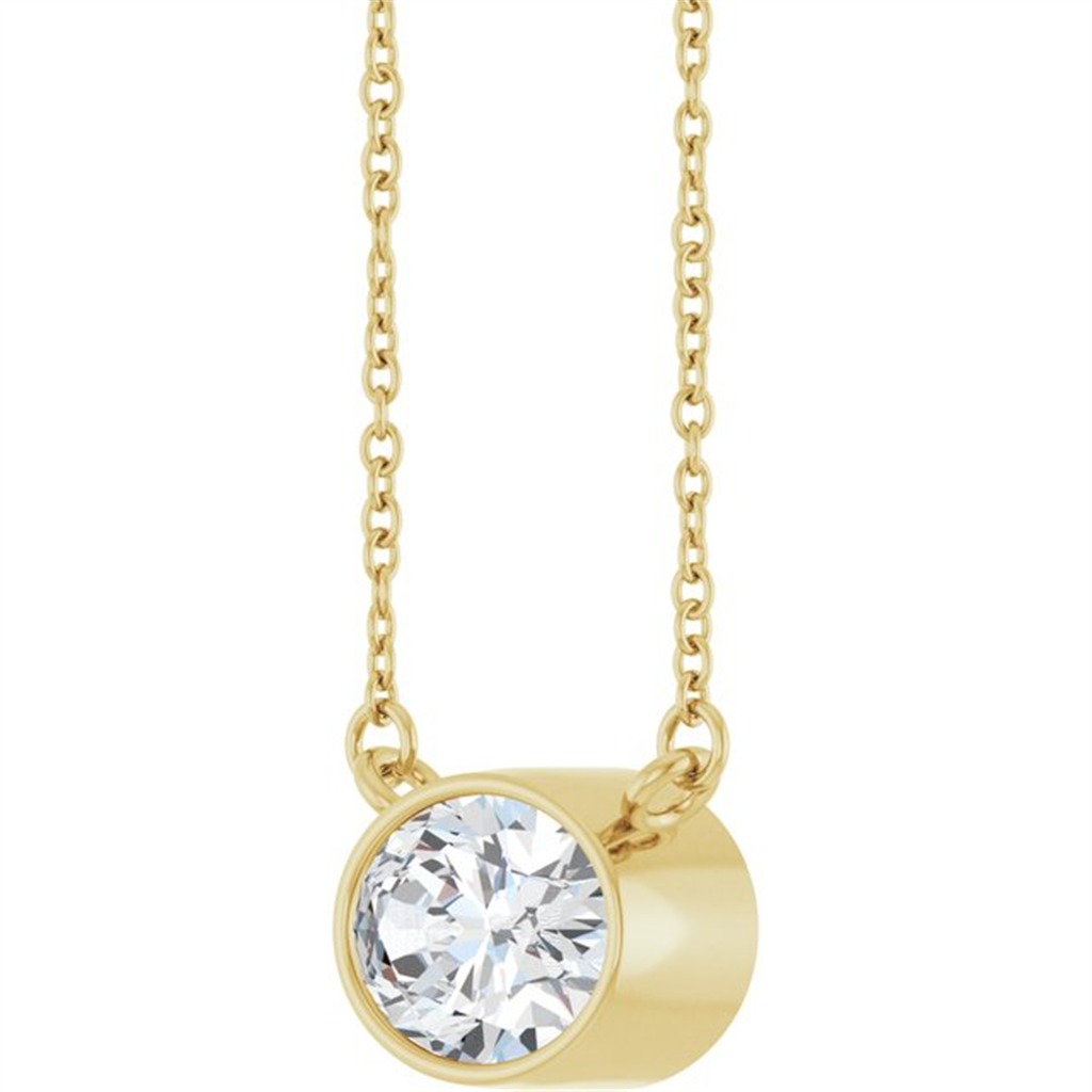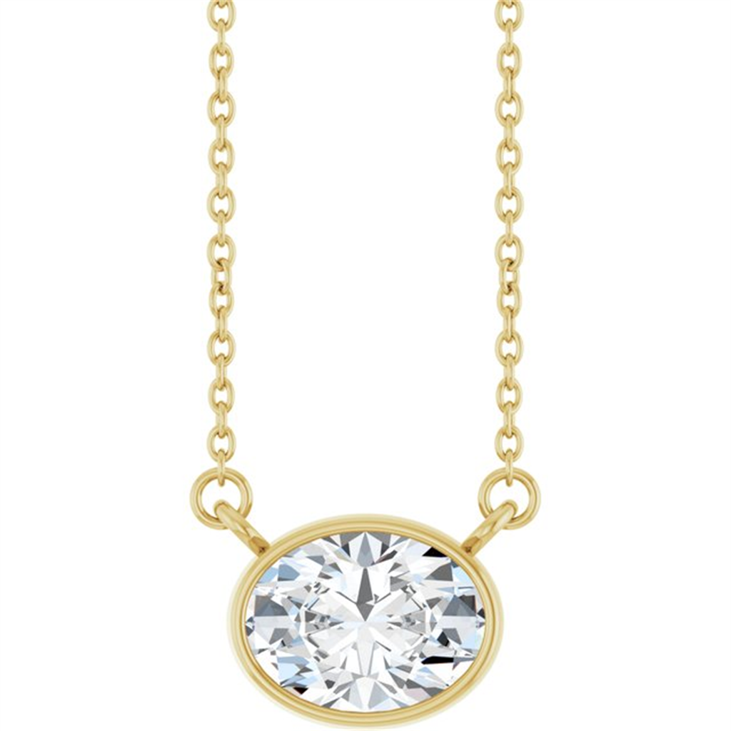 14K Yellow Gold Lab Grown Bezel Set Oval Diamond Pendant Necklace (1.00ctw)